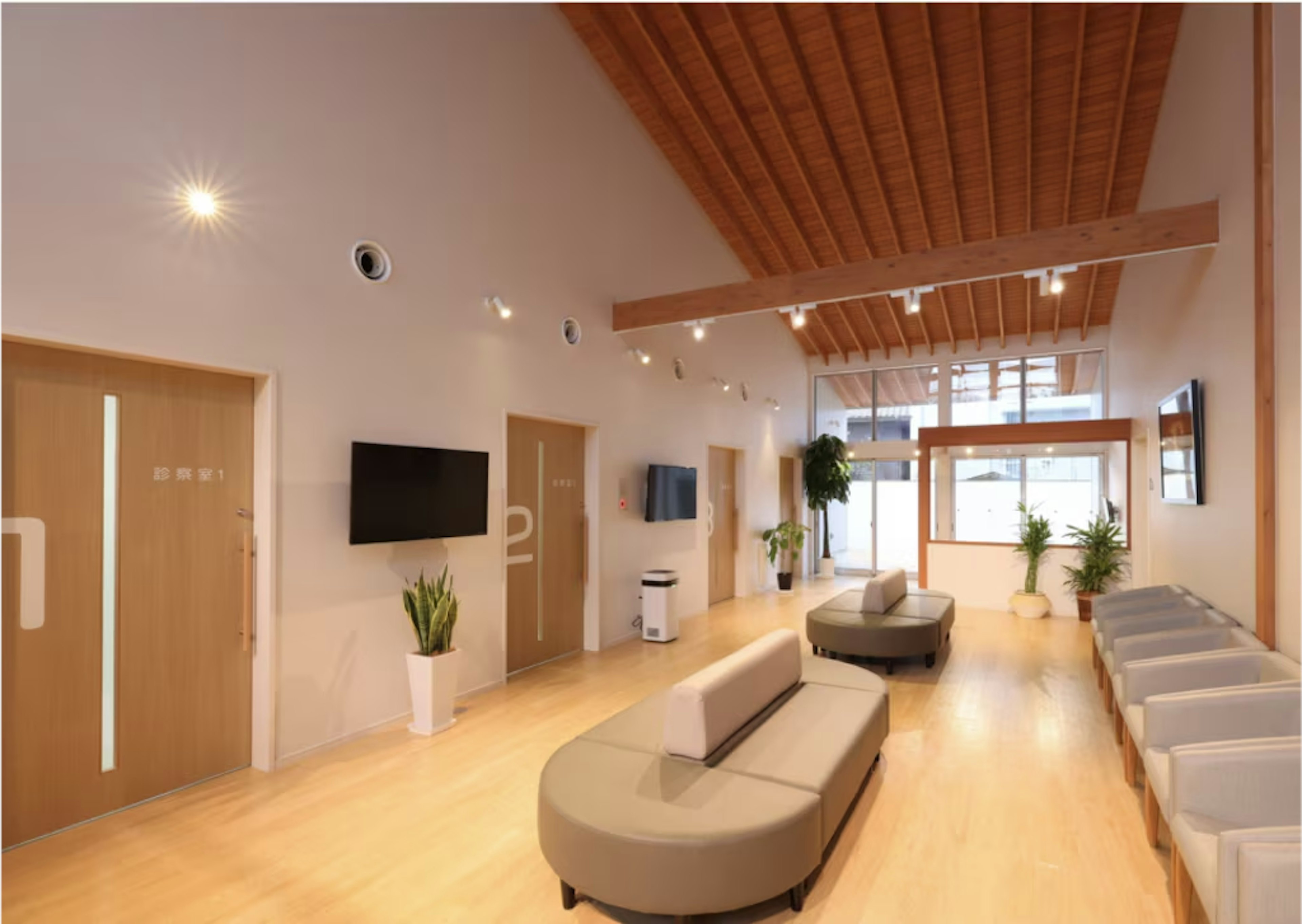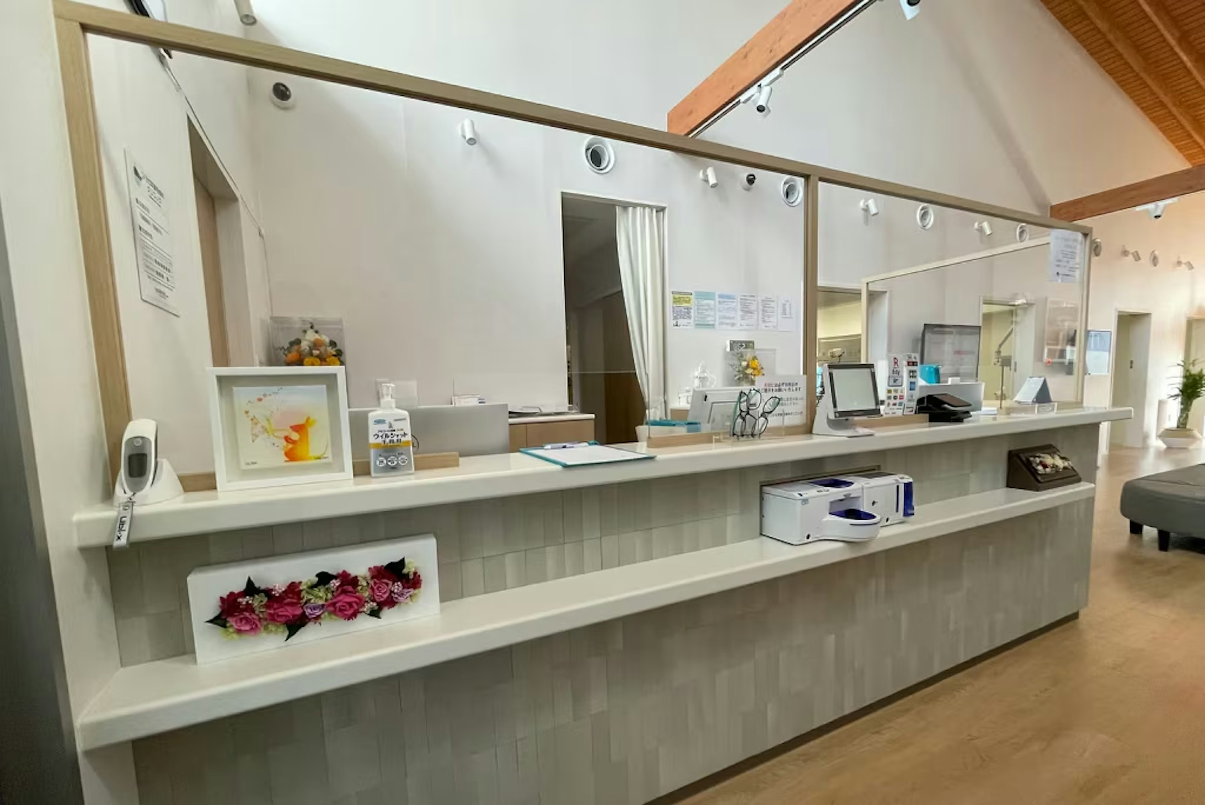 地方ならではの大きな土地の診療所を活かし、感染対策のために空間を広く取った待合室や、来院の導線を別にした発熱室など、院内のレイアウトも工夫しています。