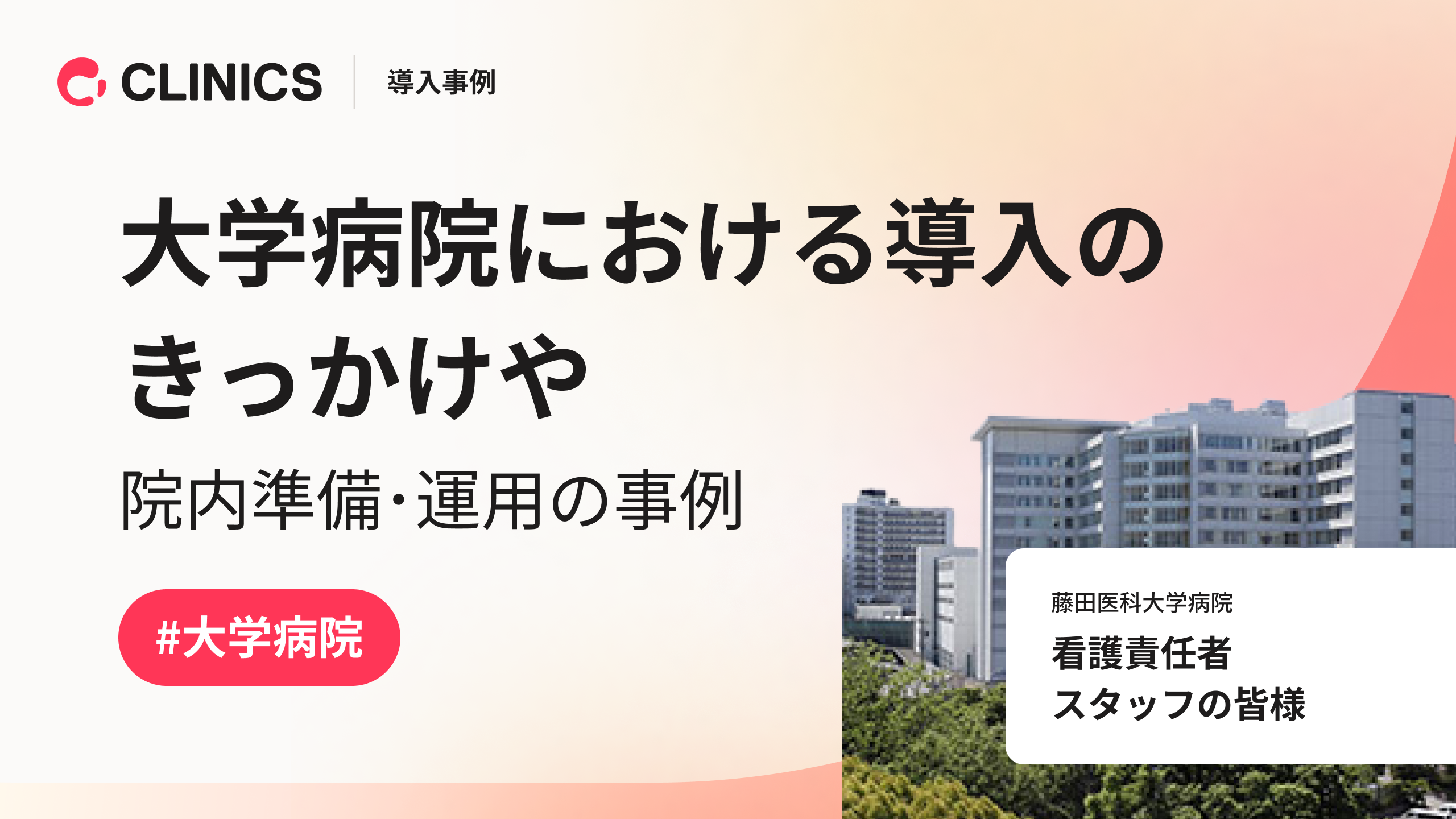 導入検討の段階で色々と調べたところ、すでに全国の多くの病院で導入実績のある評判や、他の医療機関の導入事例についてもお聞きできたので、メドレーのCLINICS導入を決めました。