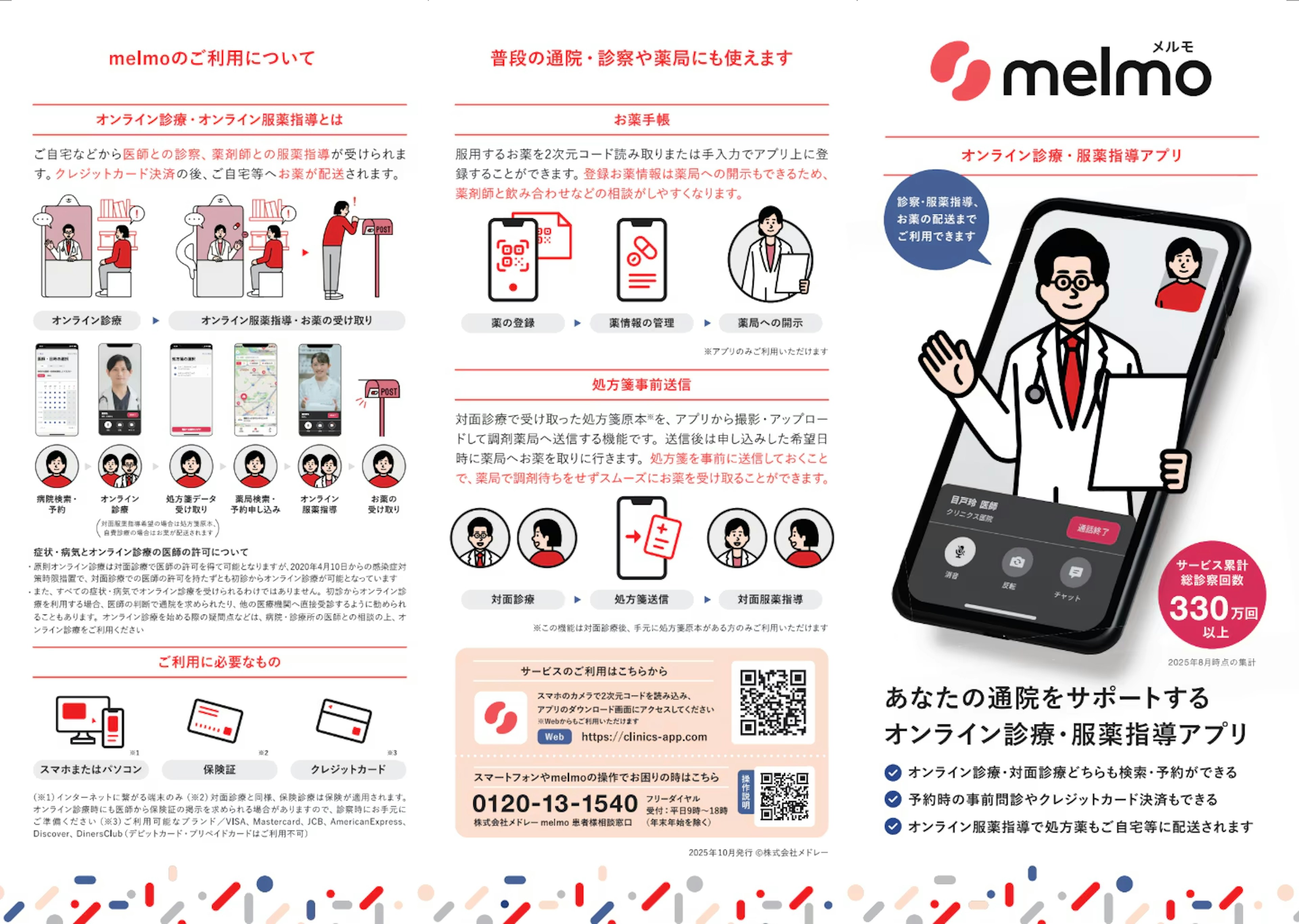 実際にオンライン診療を案内する際には、メドレーさんでご用意いただいているパンフレットをお渡ししています。