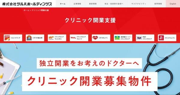 参考URL:クリニック開業支援|株式会社ツルハホールディングス (tsuruha-hd.com)