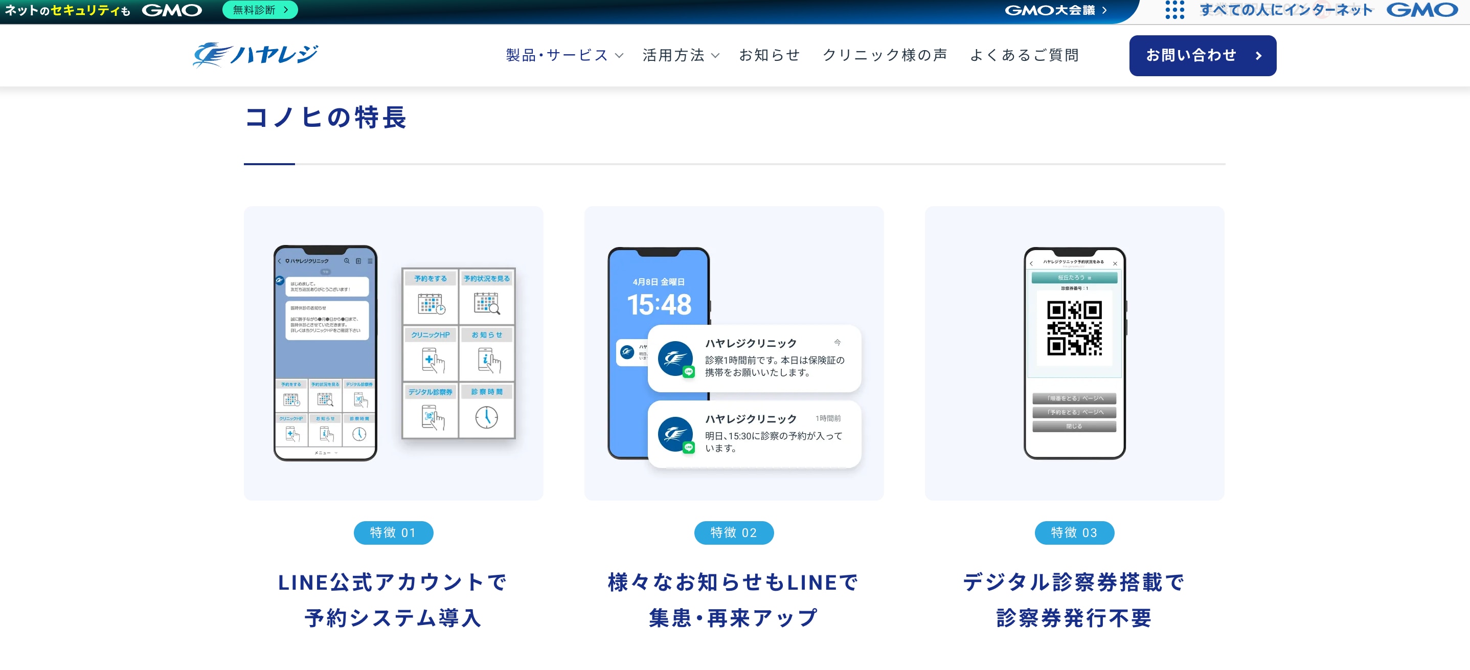 洗練された操作画面によって患者さんの予約離脱を防ぎ、高い予約完了率を実現。管理機能だけでなく、Googleマップ対策やWeb広告などの施策と予約動線を一体化できるため、Web上の露出を高めて戦略的に新患数を増やすことが可能です。使いやすさと集患対策の両立を重視し、クリニックの認知度を向上させたい場合に適しています。