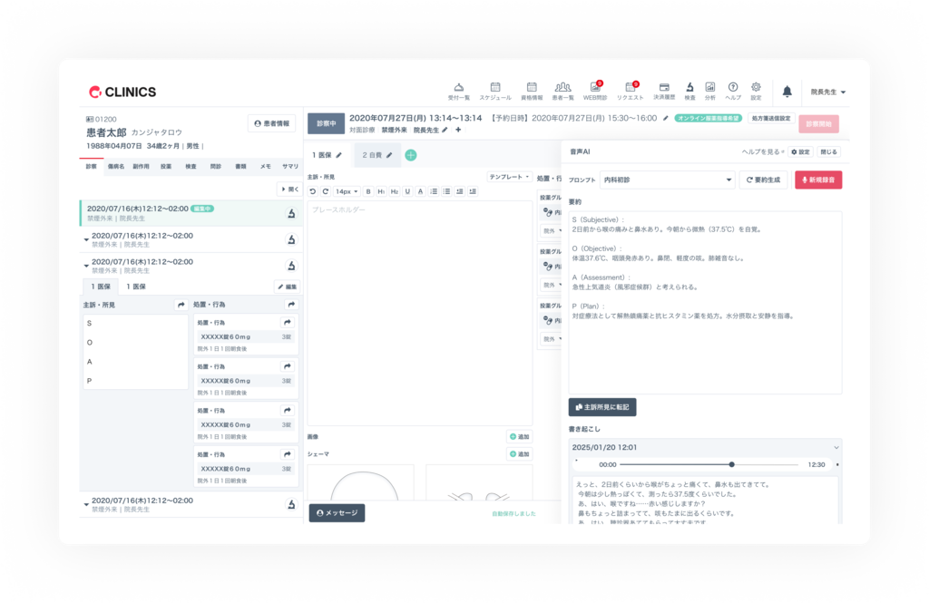 スタッフに聞くと、レセコン連動型は2つのシステムを立ち上げて左右を見ながら入力するので大変だったけれど、CLINICSはカルテの操作だけでいいので楽だと言っていました。
