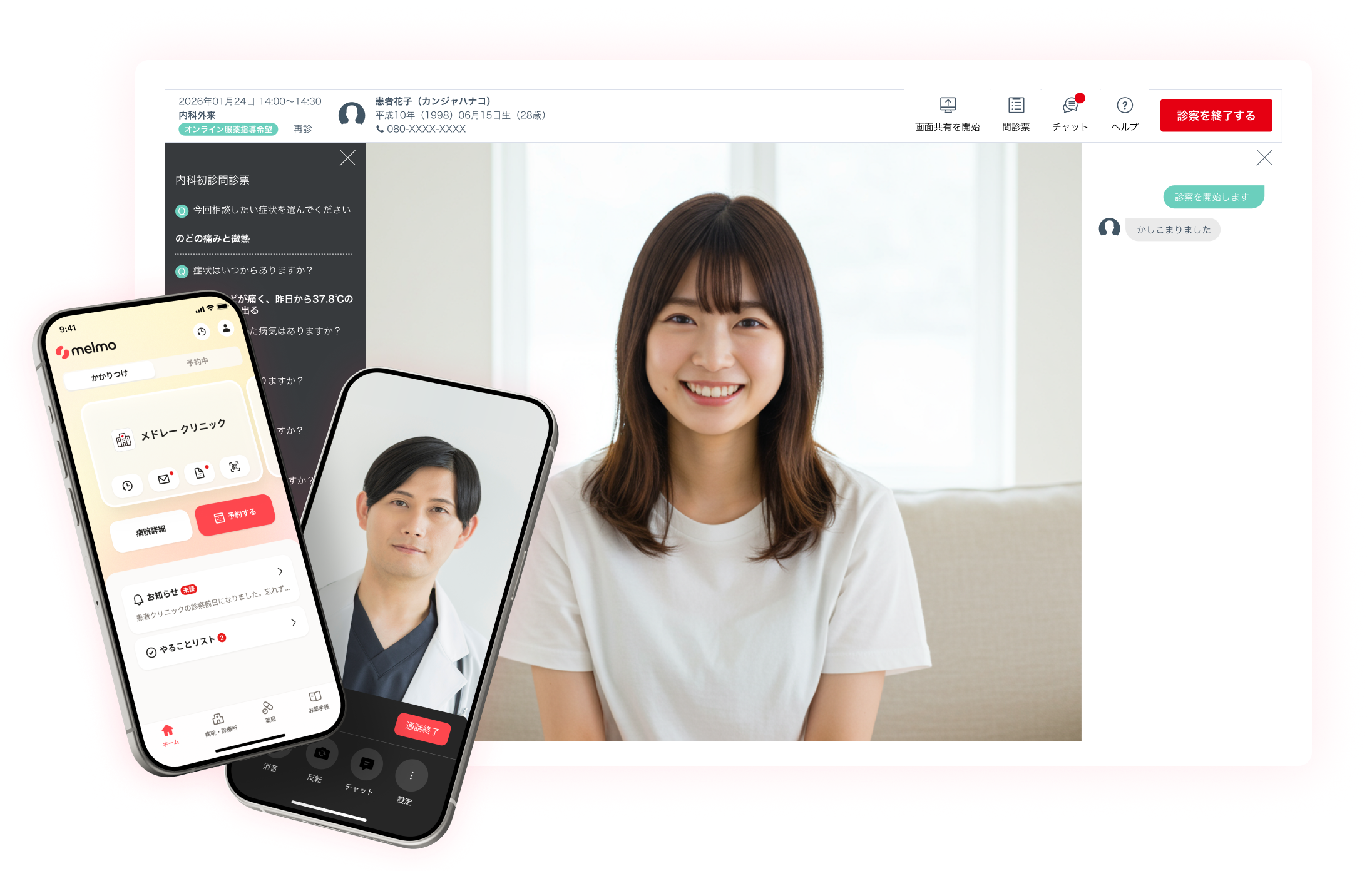 ビデオ通話もカルテ記載も、ひとつの流れで