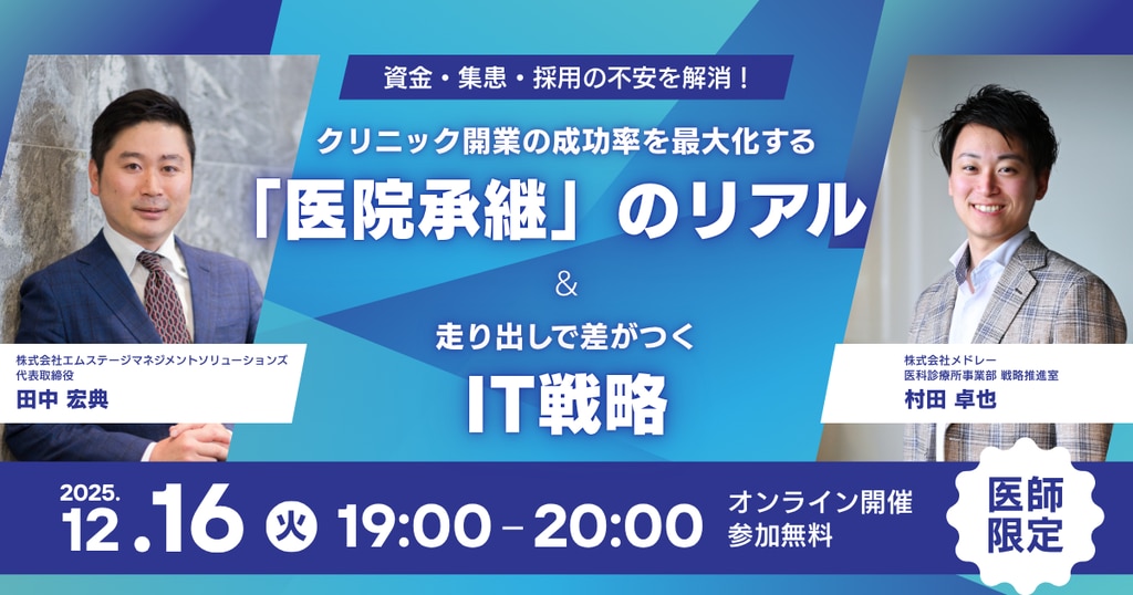 クリニック開業の成功率を最大化する「医院承継」のリアル&走り出しで差がつくIT戦略
