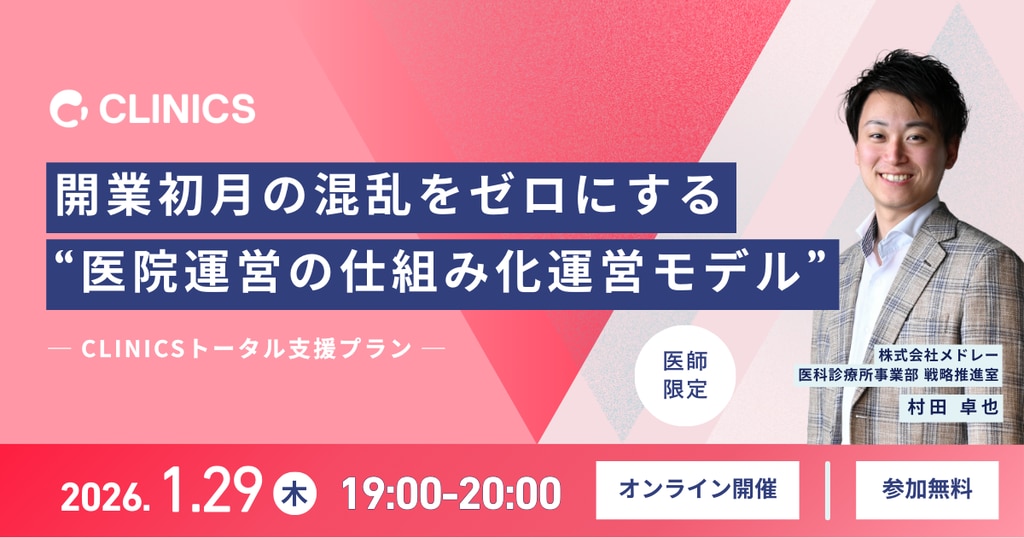 本セミナーでは、こうした“開業初月の混乱”を未然に防ぎ、最小人数でも医院が安定稼働する 〈医院運営の仕組み化モデル〉 を解説します。