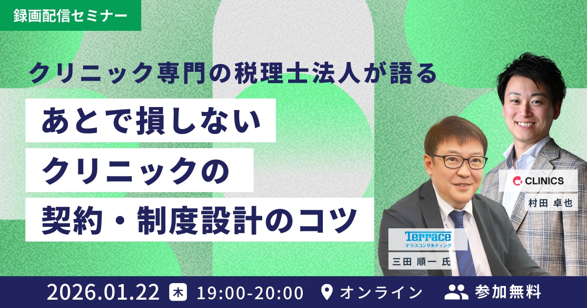 本セミナーでは、クリニック経営を知り尽くした税理士法人が、先生が将来「あの時こうしておけば…」と後悔しないための、法的・経営的リスク対策を体系的に解説します。