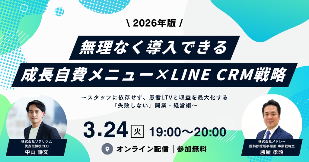 本セミナーでは、2026年に向けて確実に需要が伸びる「成長自費マーケット」をデータに基づき解説。「何をやるか(メニュー)」だけでなく、医師やスタッフのマンパワーに依存せず、システムを活用して「どう回すか(オペレーション)」までをセットでご提案します。