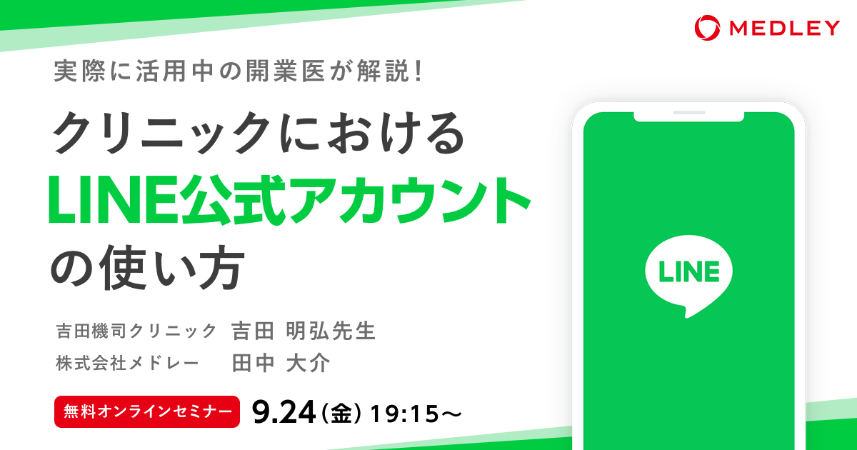 患者さんが来院しやすい環境を作り、より患者さんの定着を図るため、クリニックにおいてもLINE公式が活用されています。本セミナーでは、LINE公式で患者さんと繋がることにより、患者体験の向上に成功している吉田機司クリニック吉田先生にお話を伺います。HPやオンライン診療、WEB問診、予約システムなどとの相乗効果も含め、吉田先生がLINE公式を導入した背景や実際に活用している事例をぜひ貴院の参考にしてみてください。